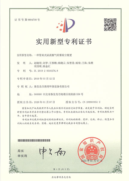 一種管束式渦流煙氣除霧除塵裝置-2020