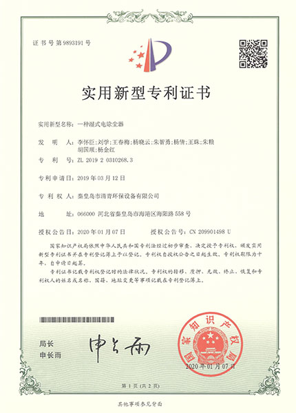 一種濕電除塵器-2020