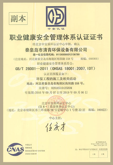 職業(yè)健康安全管理體系認(rèn)證副本中文