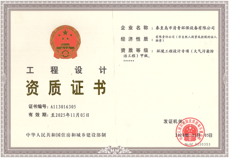 環(huán)境工程設(shè)計專項甲級資質(zhì)